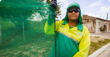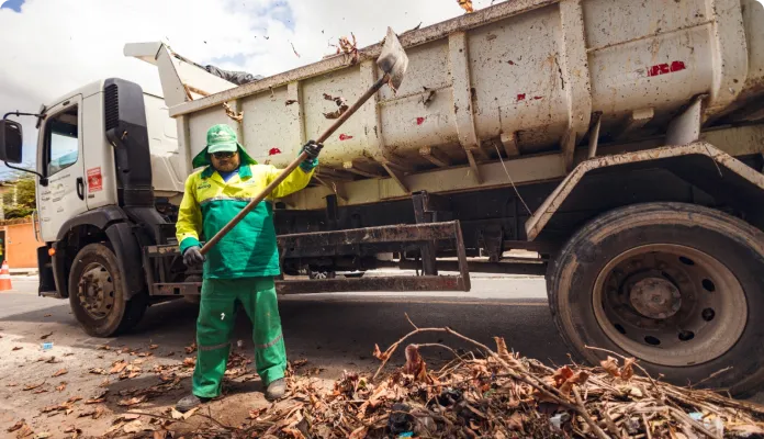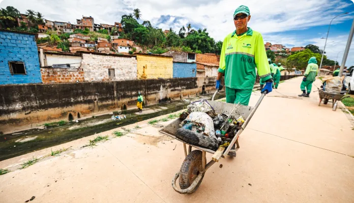 Com regularidade, garante a limpeza da cidade e o bem-estar da população e do meio ambiente. Abrange resíduos domiciliares e de limpeza urbana.