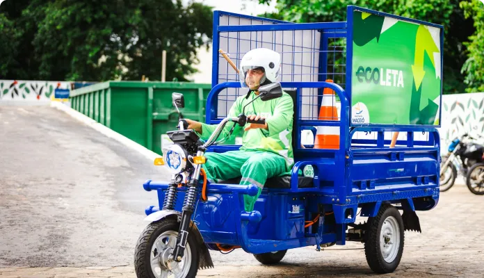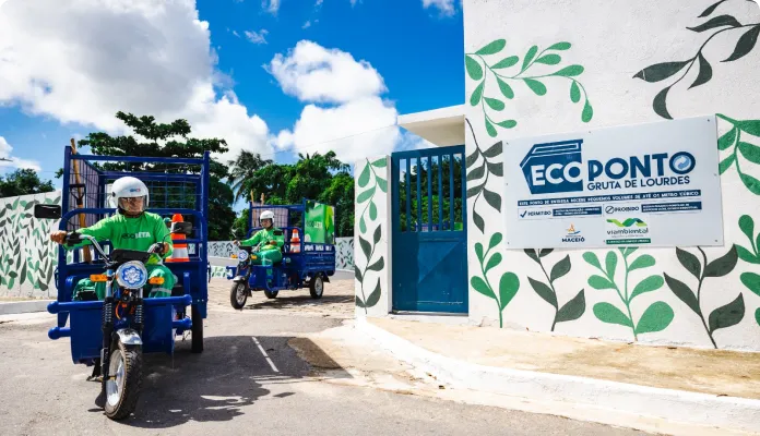 Também utilizamos veículos elétricos para coleta de resíduos, carregados em ecopontos a partir de sistemas de geração de energia solar, contribuindo efetivamente com a sustentabilidade ambiental.